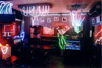 このネオンアート展は「ネオンによる芸術性の追求」をコンセプトに1989年の福井大会に始まり、福島、秋田、三重、長崎、沖縄、静岡、長野と毎年開催されてきましたが、残念ながら1997より現在まで活動は休止しております。今後活動が再開し、開催決定の際はホームページでお知らせ致します。これまでは単に広告媒体として、いわゆる看板としての利用、イメージが強かったネオンが現在では、造形、装飾用等、あらゆる場所での展開を可能にしました。最近では他の団体・個人によるネオンアート展の開催も時々、耳にするようになり今後増々楽しみな分野ともいえそうです。また、弊社小ルームでは当時の作品(一部)をはじめ、新作まで常設展示致しておりますので、お気軽にお立寄り下さい。